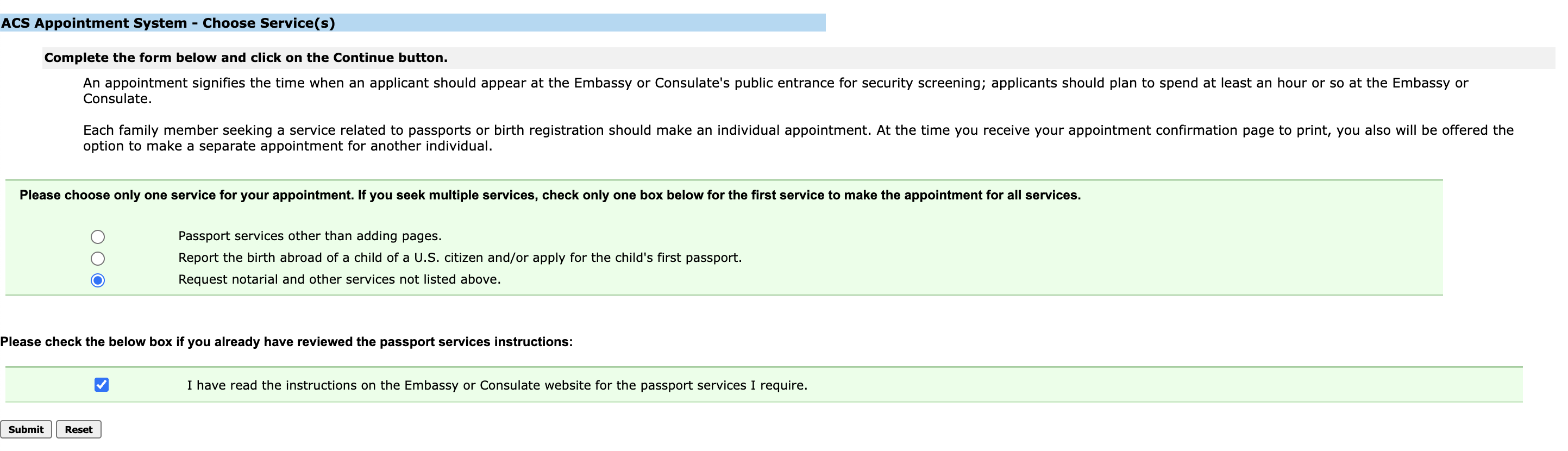 Once you select Country and City, you’ll need to click “Make Appointment” and then “Request notarial and other services not listed above”.